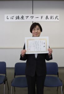 1月30日(金)、さわやかちば県民プラザにて開催された「第7回ちば講座アワード表彰式」では、さわやかちば県民プラザ局長より池田静香教授に表彰状が授与されました。