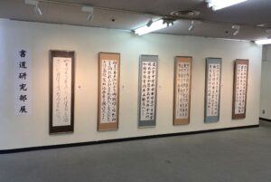 書道研究部春季展は、学外で展示を行うようになって15回目を迎え、聖徳祭での展示と並ぶ年間2大イベントの内の一つであり、部員の日頃の錬成成果の発表の場です。