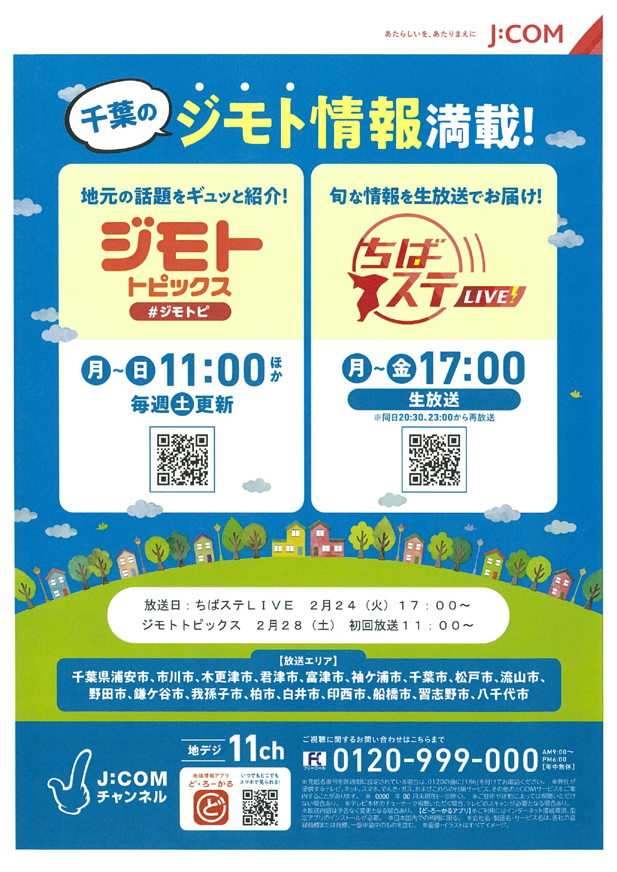 ・放送エリア:千葉県全域のJ:COMサービスエリア視聴可能]
