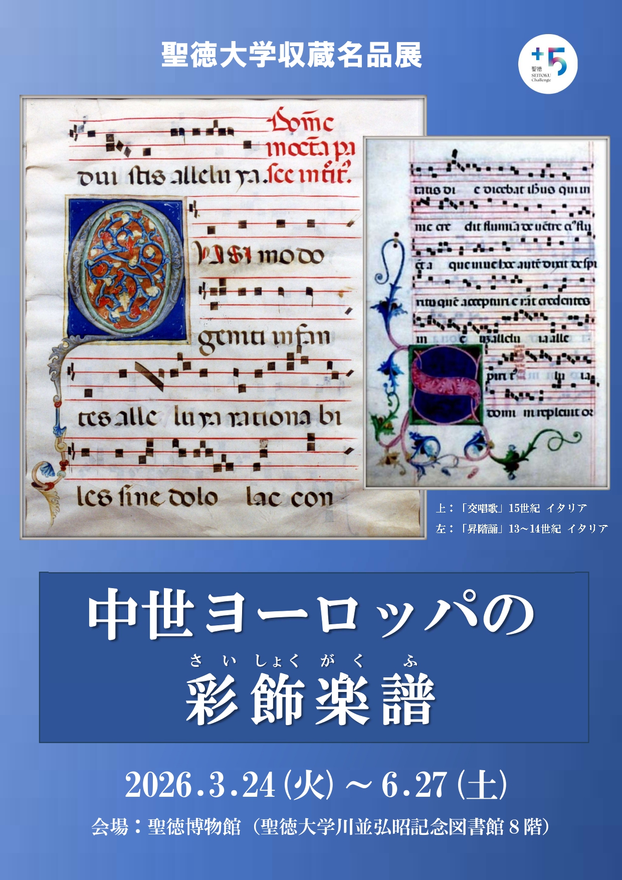 聖徳大学収蔵名品展「中世ヨーロッパの彩飾楽譜」のご案内(2026.3.24~2026.6.27・無料)