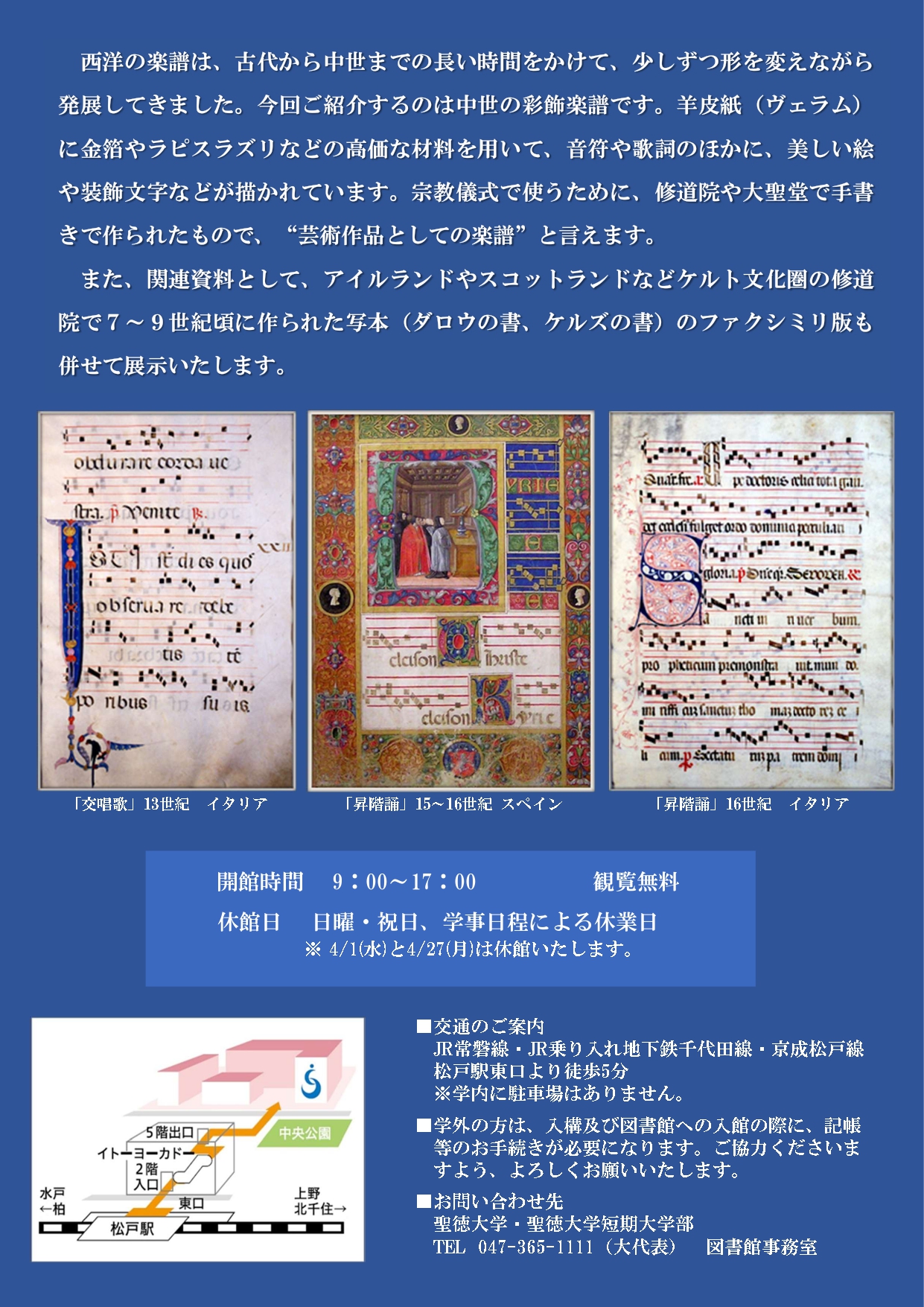 問合せ先:聖徳大学・聖徳大学短期大学部 図書館事務室 TEL 047-365-1111(大)