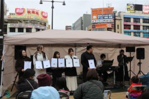 3月20日(金・祝)、松戸駅西口駅前広場ペデストリアンデッキにて、アトレ松戸主催の音楽イベント「松戸音楽隊 Vol.2」が開催されました。当日は、聖徳大学大学院音楽文化研究科の大学院生・聖徳大学音楽学部の学生たちが出演し、会場に素敵な音楽を届けました。