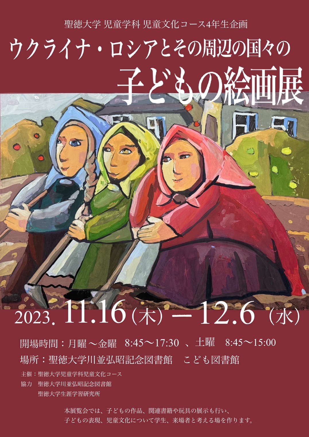 「聖徳大学児童学科児童文化コース4年生企画 ウクライナ・ロシアとその周辺の国々の子どもの絵画展」を開催いたします。