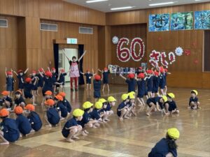 戸外で行う表現活動として各学年でさまざまに体を動かしています。子どもたちの意欲を高め、楽しんで活動に参加できるよう、一人ひとりの良さや可能性が伸ばせるよう援助してまいります。
