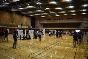 1日目は探究発表会でした。日頃から学習、研究した成果をプレゼンテーションやポスターセッション、論文などで全校生徒が発表をしていきました。発表内容は学年ごとに異なり、身近な問題解決、SF小説作り、世界遺産の問題等、個人で考えたテーマ研究等、多岐にわたりました。各生徒がタイムテーブルに沿って発表しながら、聴講する場合は発表を自由に選択し、学年を越えて評価し合う姿が印象的でした。