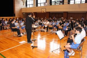 【特色ある授業と環境】 音楽・合奏指導における情熱と一体感、探究的な社会の授業における当事者意識を高める工夫、また教室環境や資料の整備についても高い評価をいただきました。