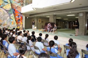 講座は、矢切地域包括支援センターの方々を講師にお招きし、絵本や寸劇、さらには誰もが楽しめる脳トレ体操などを通して進められました。子どもたちはまず、認知症が「脳の病気」によって引き起こされる症状であることを正しく理解し、記憶の一部がうまく働かなくなるメカニズムを学びました。