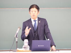 今年度は、富士フイルムビジネスイノベーションジャパン株式会社 千葉支社長 清水博志氏をお招きし、「富士フイルム 第2の創業と私たち千葉支社の取組み」をテーマにご講演いただきました。