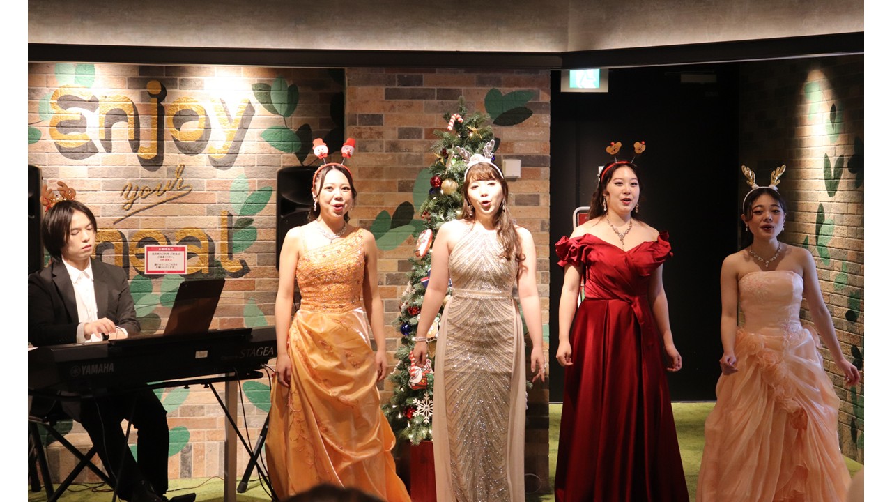 「ソプラノと電子オルガンによる演奏会」と題して、クリスマスにふさわしい名曲をお届けしました。電子オルガンによる演奏から始まり、ソプラノ4人の独唱の後、出演者全員によるビックバンドクリスマスメドレーで締めくくりました。