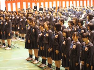3月5日(木)、前日までの雨も上がり、気持ちの良い晴天のなか、第41回の卒業証書授与式が挙行されました。高校生67名は3年間の思いを胸に、緊張した面持ちで式に臨みました。慣れ親しんだ本校を卒業する生徒たちにとって、一抹の寂しさを感じながらも、将来への希望を胸に堂々とした態度で参加することができました。学園長先生、校長先生、ご来賓のかたからのお祝いの言葉をいただきました。卒業生は本校生徒として誇りを持って、今後の人生を歩むことを心に誓って巣立って行きました。保護者の皆様も感動を新たにされていました。3年間あるいは6年間保護者の皆さまの多大なご協力も賜りました。感謝申しあげます。