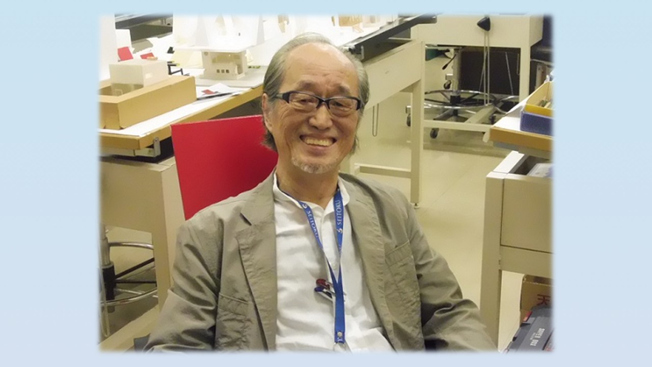 不破章夫先生は、本学では珍しい建築家の先生です。総合エンジニアリングを手掛ける会社で国内外の大きなプロジェクトに参加なさっていたほか、軽井沢の別荘など、個人の建物も設計されていました。本学で教鞭を取っておられた際は、旧生活文化学科の空間デザインコースやその後の総合文化学科インテリアデザインコースなどで、設計製図やインテリア計画等を担当されていました。俳優のリリー・フランキーさんに似た風貌で、隠れファンも大勢いました。